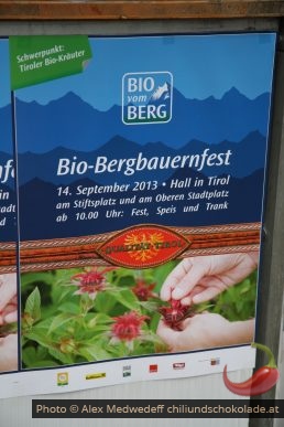 Der Tag war zwar anstrengend, aber doch sehr mit positiven Erlebnissen ausgefüllt! Erstens war die Kundschaft doch recht zahlreich: viele Menschen wollten Bioobst oder – kuchen bei uns einkaufen, kosteten die Äpfel und Birnen und ließen sich von uns gerne beraten. Darunter waren natürlich immer wieder Menschen, die wir mehr oder weniger kannten und ein kleines Schwätzchen ging sich immer aus. Für mich war es auch besonders nett, die Verantwortlichen der Bio-Austria Tirol mal kennen zu lernen, nachdem ich schon oft mit ihnen per Email Kontakt gehabt hatte. Aber auch andere ProduzentInnen, die ich bisher nur über ihre Produkte kannte. Eine echte Bereicherung, wenn man sieht, wie viel Fachwissen es bei uns gibt was Bio und gute Lebensmittel betrifft!
