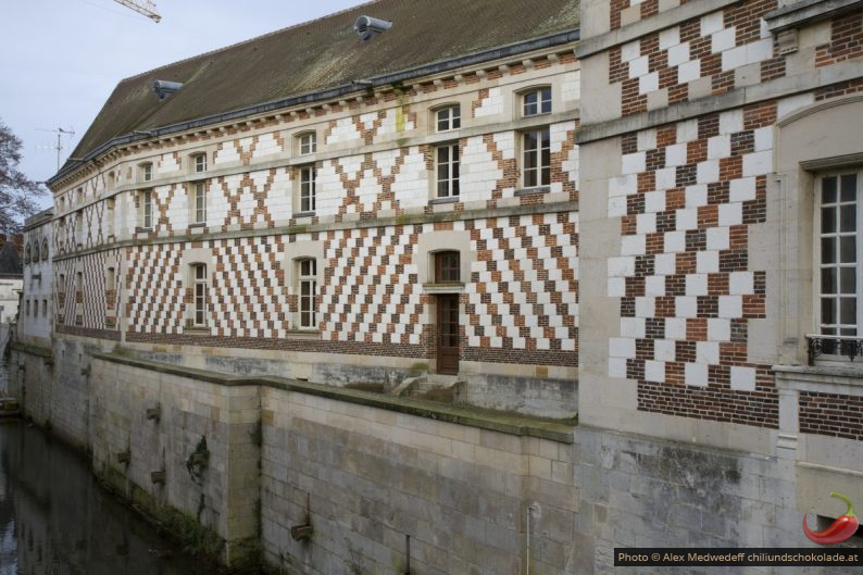 Danach schlendern wir noch durch den Ort, entdecken ein paar Fachwerkbauten, Kunstwerke im Park und das berühmt Château du Marché, das sich schlossartig über den Kanal spannt.