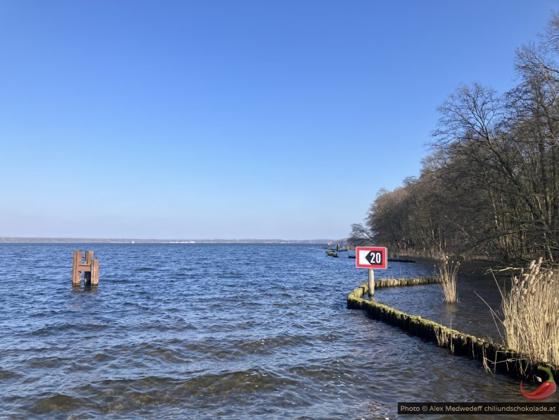 Rahnsdorf ist ein altes nettes Dorf mit zwei speziellen Sehenswürdigkeiten: einmal gibt es da eine Ruderfähre, die einen mit 12 Ruderschlägen an die andere Seite der Spree bringt. Und es gibt dort den einzigen Fischer des Müggelsees, der seine aber auch andere Fische geräuchert zum Verkauf anbietet. Leider bin ich für beides zu früh im Jahr unterwegs, aber wenn ihr dort seid, erkundigt euch, ob beides in Betrieb ist.
