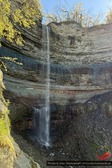 Bei Valaste besichtigen wir einen Wasserfall, der sich die Steilküste in Richtung Meer hinabstürzt. Danach trinken wir gemütlich an einer Steilküste Kaffee und genießen die wärmende Sonne.