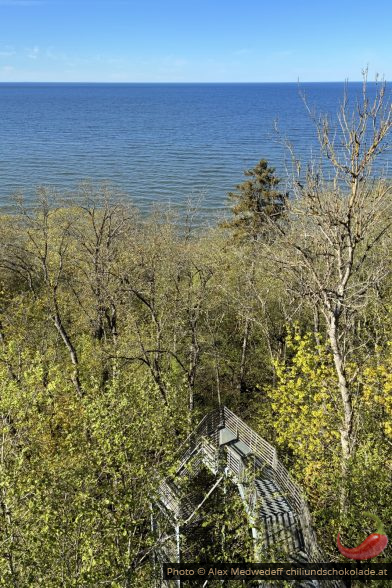Vom Leuchtturm aus hat man einen super Ausblick einmal über den Fluss, aber auch über die Ostsee in Richtung Westen. Narva-Joesuu besitzt einen riesigen Strand, aber es ist zu kalt zum Baden, wenige Menschen sind zu sehen.