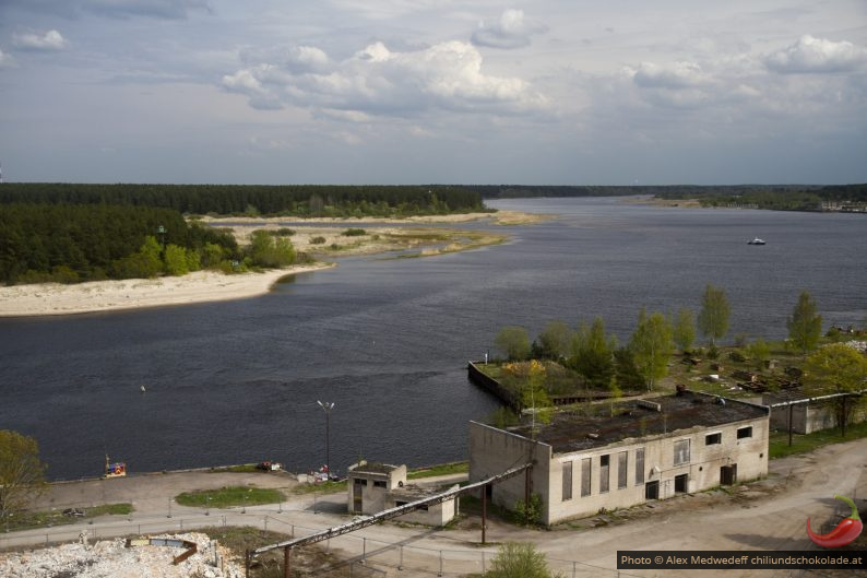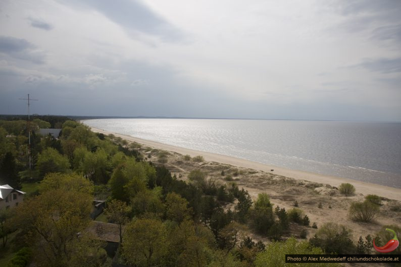 Vom Leuchtturm aus hat man einen super Ausblick einmal über den Fluss, aber auch über die Ostsee in Richtung Westen. Narva-Joesuu besitzt einen riesigen Strand, aber es ist zu kalt zum Baden, wenige Menschen sind zu sehen.