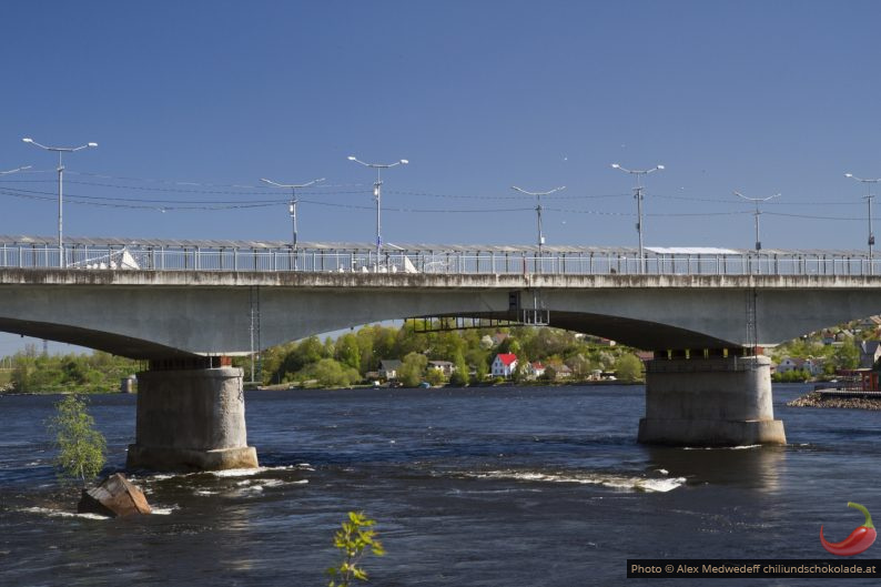 Wir parken unterhalb der Burg und radeln bis zur Grenzbrücke vor. Die Brücke ist inzwischen für Fahrzeuge gesperrt, aber man sieht immer wieder Menschen mit Gepäck die Brücke zu Fuß überqueren.