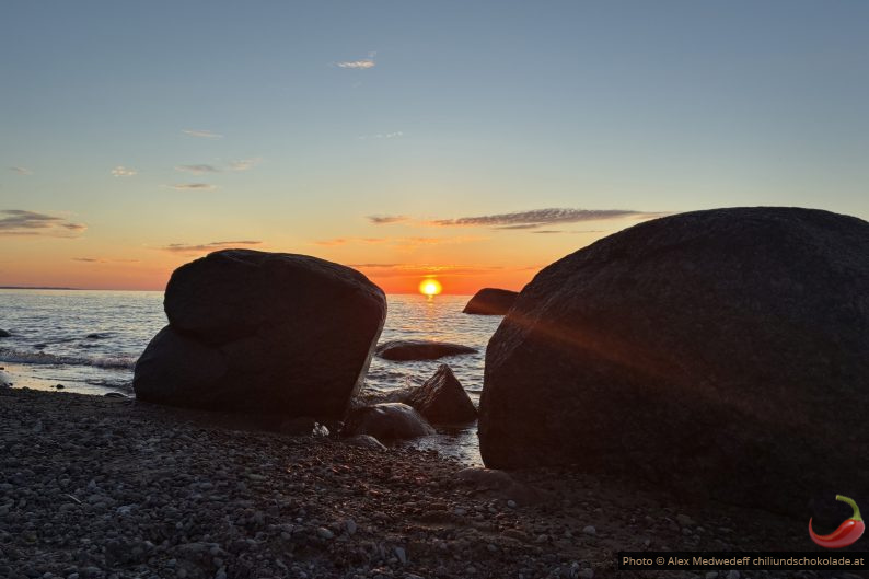 Bei Valaste besichtigen wir einen Wasserfall, der sich die Steilküste in Richtung Meer hinabstürzt. Danach trinken wir gemütlich an einer Steilküste Kaffee und genießen die wärmende Sonne.