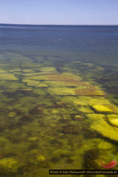 Dann fahren wir noch mit unseren Fahrrädern auf die gegenüberliegenden Seite und schauen über den See zurück. Es gibt dort nur schmale Wanderpfade, aber irgendwie ist es auch mit dem Fahrrad machbar.