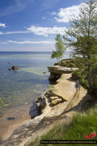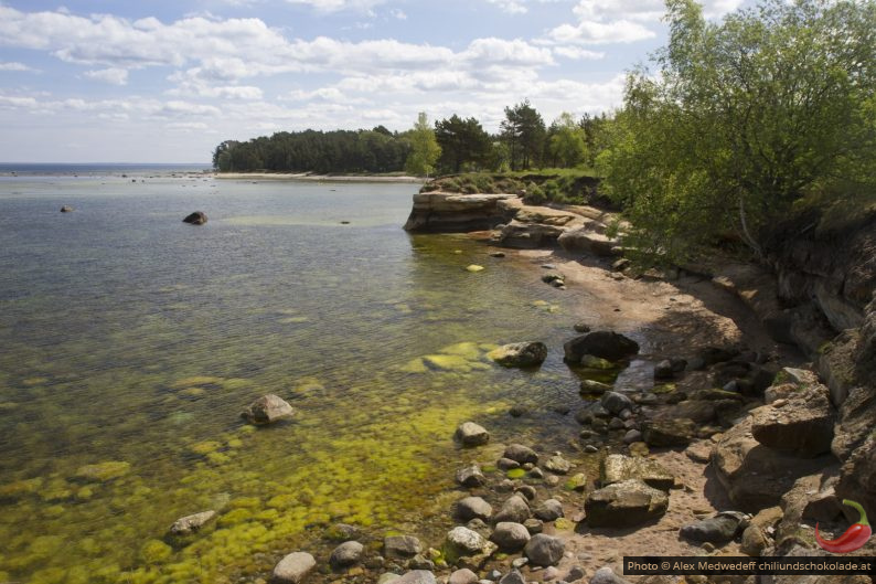 An der Küste gibt es eine Menge Gesteinsschollen, die kleine Buchten bilden. In den flachen Buchten sind recht viele Algen, aber auch eine Menge an Meeresvögel. Suurupi hat auch einen hinteren Leuchtturm, dem wir natürllich auch noch einen kurzen Besuch abstatten.