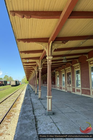 Der alte Bahnhof wurde Anfang des 20.Jahrhunderts gebaut und war für den Personenverkehr bis 1995 in Betrieb. Er ist riesig und ganz aus Holz gebaut.