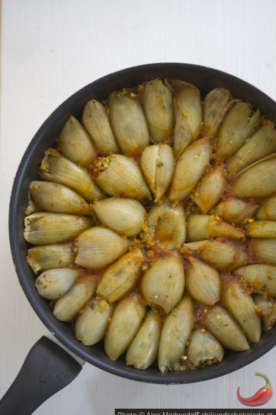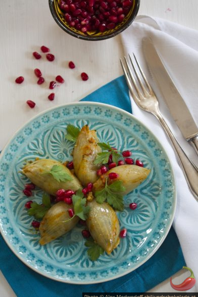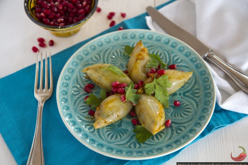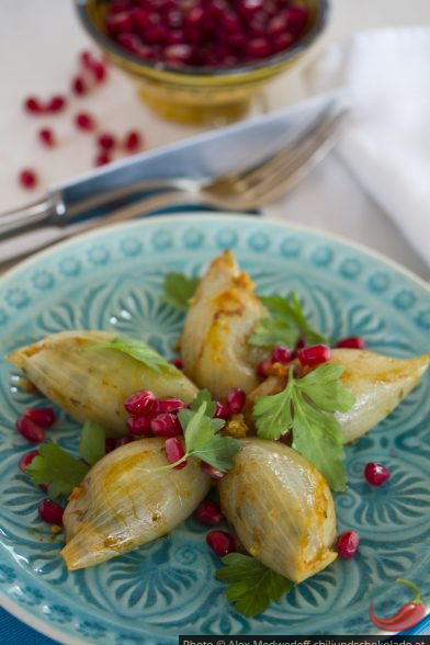 Ich hatte diese Zwiebel auf Instagram gesehen und alleine optisch haben sie mich sehr angesprochen. Also habe ich eine eigene Füllung entwickelt, der ich einen orientalischen Touch gegeben habe.