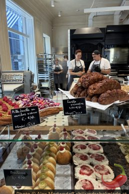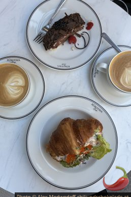 Ich gönne mir ein Croissant mit Krabben und Fischrogen – ein Wahnsinn.