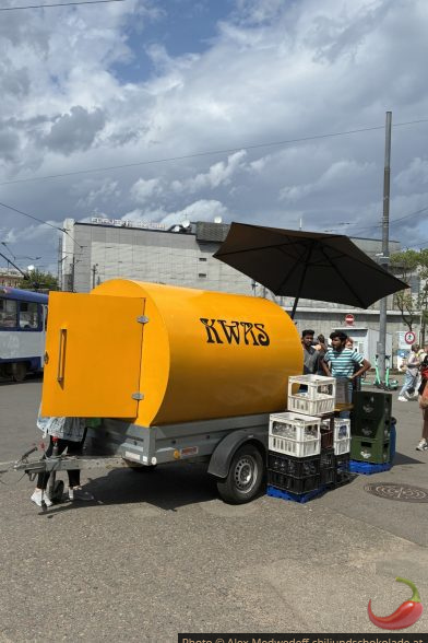 Im Außenbereich wird Kwas ausgeschenkt, ein Brotgetränk, das es auch in Litauen gibt. Zudem gibt es im Außenbereich so richtig viele Gemüsestandln, und wir decken uns mit Lebensmitteln für die nächsten Tage ein.