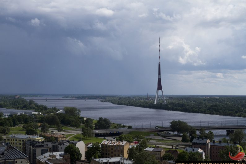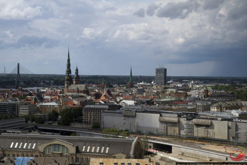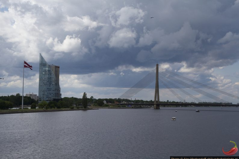 Wir bleiben lange auf der Aussichtsplattform bevor wir wieder zu unseren Fahrrädern hinuntergehen und noch einen kurzen Abstecher in die Altstadt und zum Schwarzhäupterhaus machen. Aber uns ist dort zu viel Gewusel, was das Radfahren auch unmöglich macht.